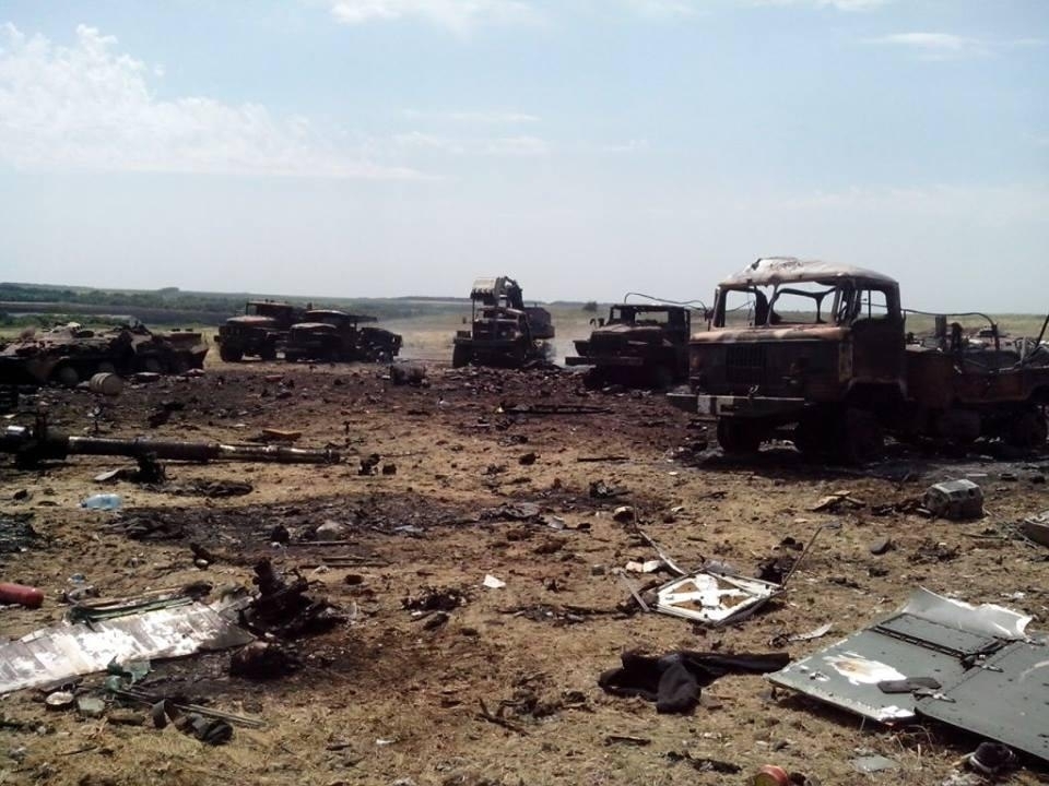 2022-02-25 Видео последствий разгрома крупной украинской колонны на дороге под г. Алешки, Херсонская область.