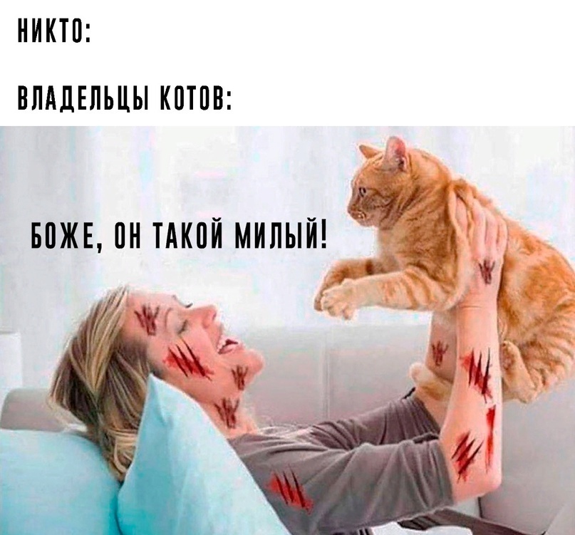 У нашей кошки Лизы "черепаховый" окрас, а так все сходится, по ситуации - один-в один. Умиление с нашей стороны всегда заканчивается такими же "железными дорогами" на руках, по крайней мере, раньше. Теперь мы научены горьким опытом и не решаемся "тютюшкать" нашу Лизу дольше 30 секунд. Именно настолько хватает её терпения.