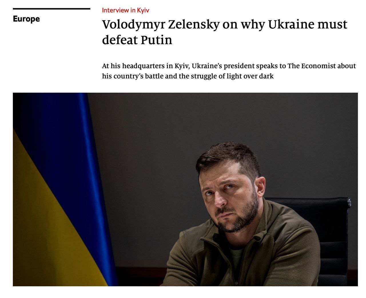 Об этом заявил Зеленский в интервью изданию The Economist.