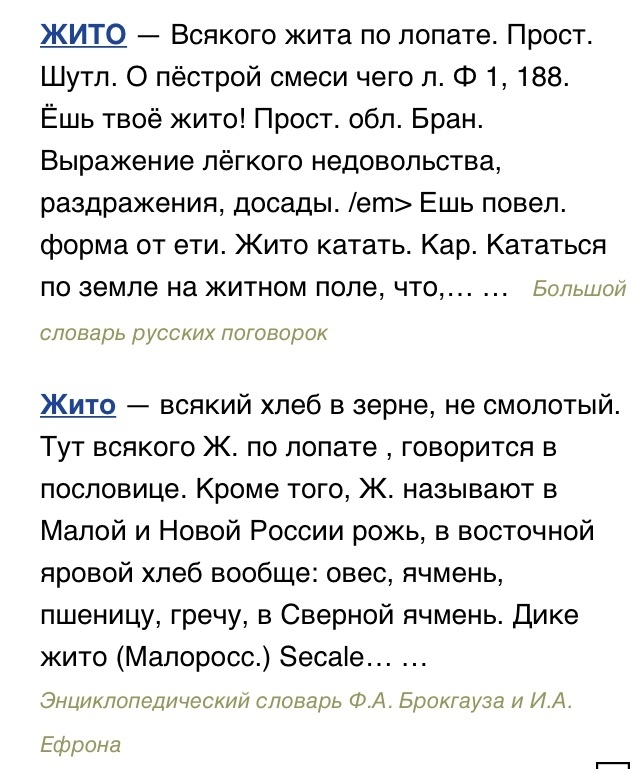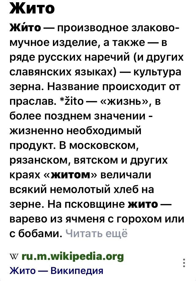 Только почему-то ни одного упоминания о том , что есть такая зерновая культура, из зерна, точнее из полученной из этого зерна муки выпекают тот самый, настоящий, житный чёрный хлеб. Не из муки с красителем, а из житной муки.