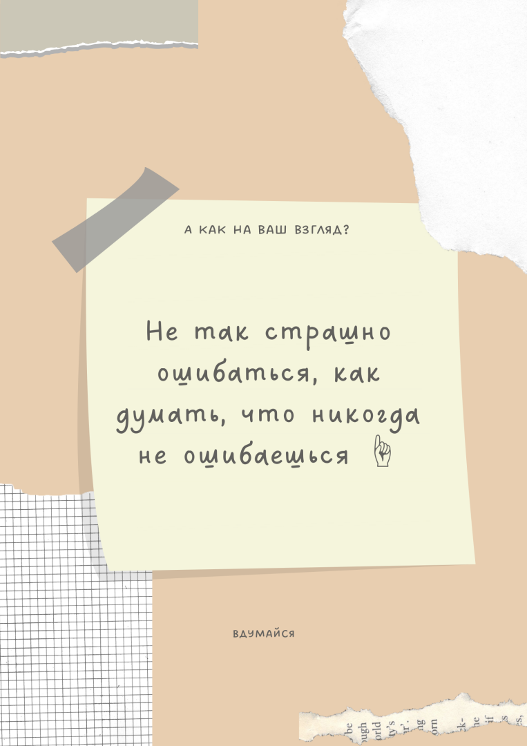 Самоуверенность, конечно, хороша но в меру. Людей, которые никогда не ошибаются, не бывает. Да и что такое, собственно говоря, ошибка? В разных обстоятельствах в определенный момент времени мы поступаем так, как считаем нужным. И только потом думаем, что можно было бы поступить по-другому. Но процесс дальнейших событий уже запущен, и он не обратим. А как бы разворачивались события, поступи мы по-другому, мы никогда не узнаем.