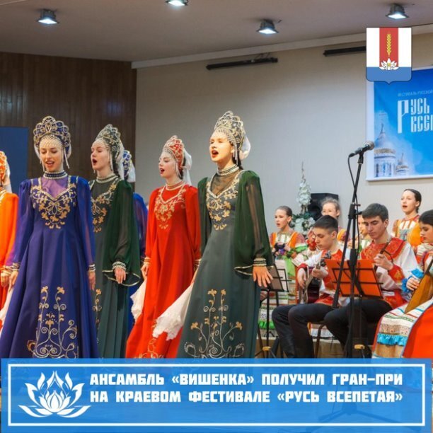 Гран-при на краевом фестивале русской хоровой музыки «Русь всепетая». 🥇В прошлом году «Вишенка» впервые приняла участие в фестивале «Русь всепетая»
