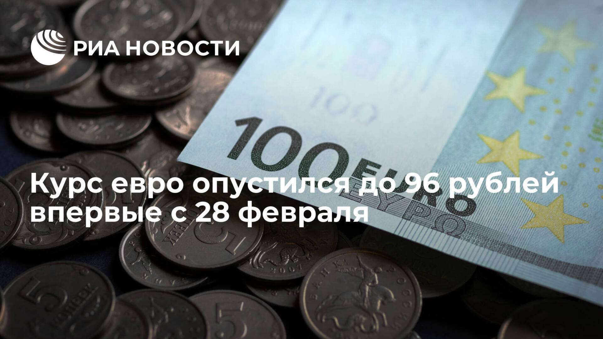 Курс евро опустился до 96 рублей впервые с 28 февраля