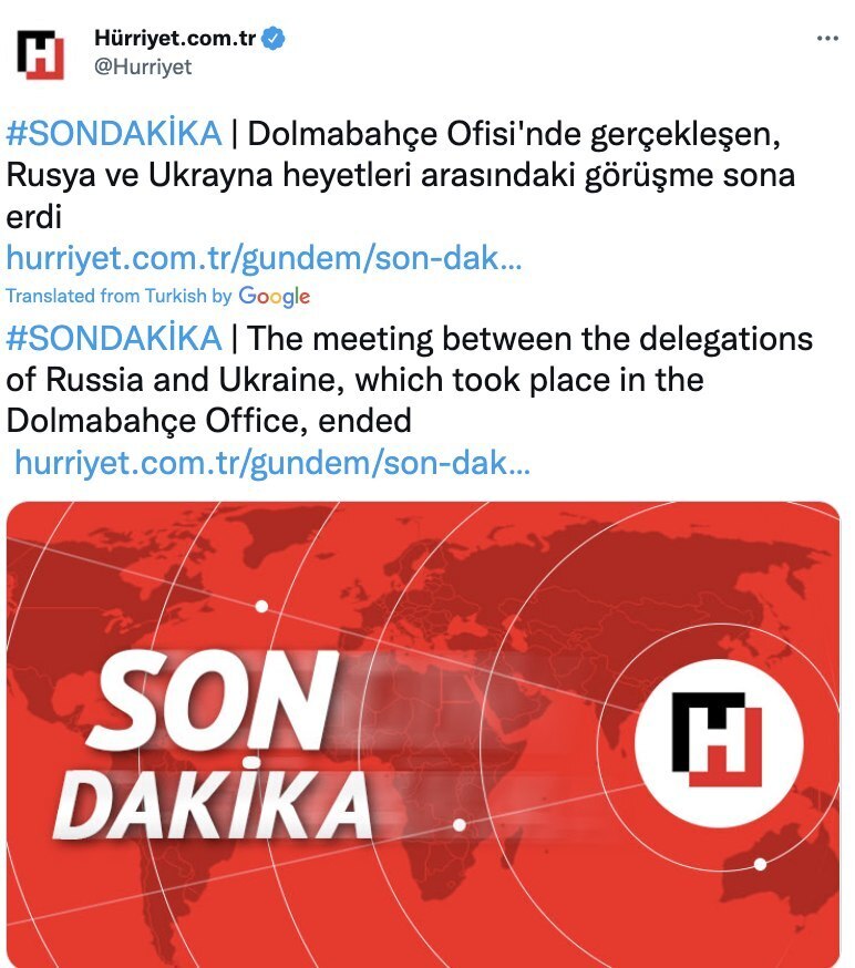 В Стамбуле завершились российско-украинские переговоры — турецкое издание Hürriyet