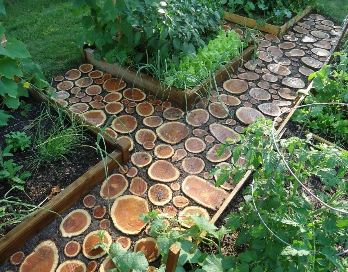 Сложить дорожки в саду можно из чего угодно: из камней, кирпичей, древесины. Просто чуть чуть фантазии и всё получится)