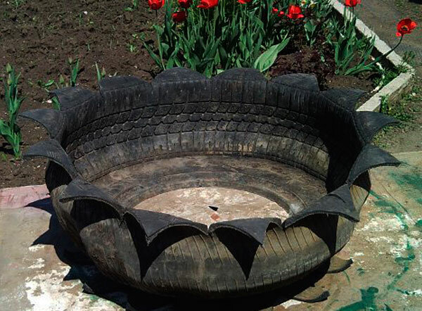 А цветочные горшки можно сделать из старых покрышек. Чтобы получилось ещё более оригинально-достаточно просто их покрасить)