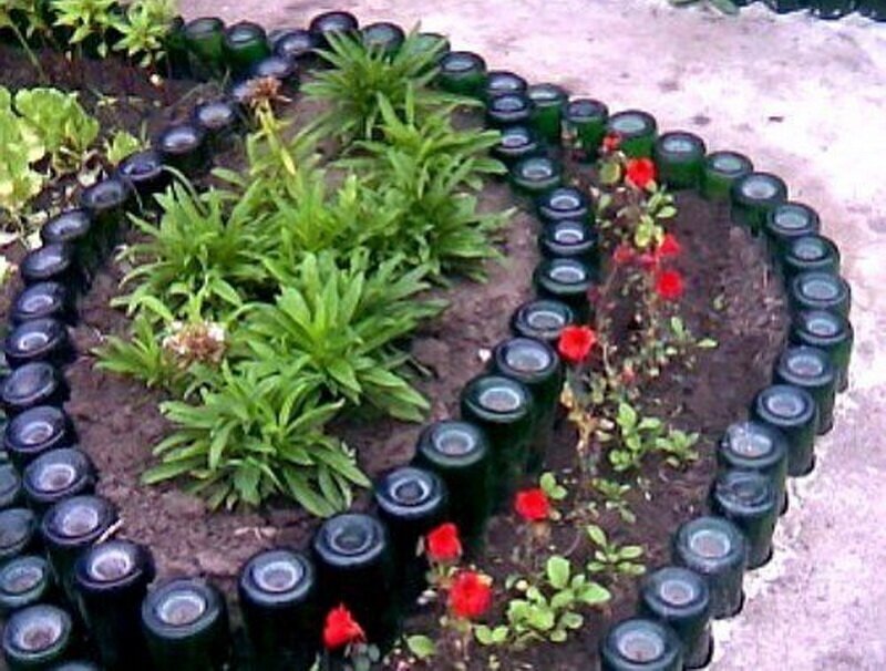 Грядки из стеклянных бутылок