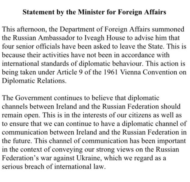 Ирландия высылает 4 российских дипломатов — МИД страны.