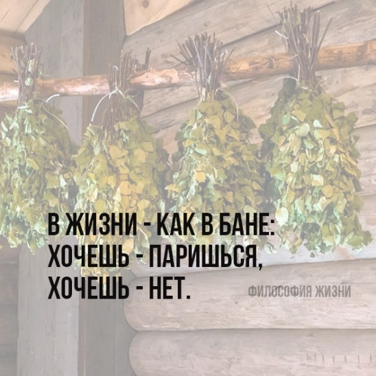 В баню человек ходит по собственному желанию, а в жизни другие правила, не все происходит так, как хочется тебе.