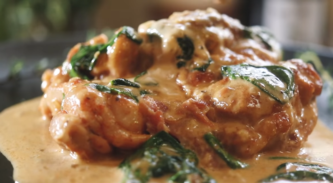 Для этого блюда можно использовать и белое мясо, но голень лучше, потому что она сочнее. В одной тарелке можно приготовить вкусный ужин или обед менее чем за полчаса. На кухне не так много грязной посуды и беспорядка. Вино, бульон и чеснок делают этот соус невероятно ароматным, а шпинат — лишь дополнительный плюс. Если вы хотите порадовать всех своими кулинарными способностями, то обязательно приготовьте это блюдо.
