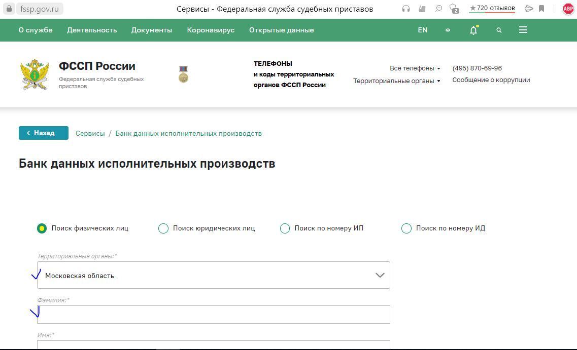 В форме необходимо заполнить свои данные ФИО, дату рождения, субъект РФ и вы можете наглядно увидеть имеющуюся задолженность.