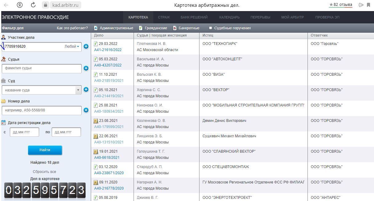 Вот ссылка на картотеку Арбитражных судов https://kad.arbitr.ru/