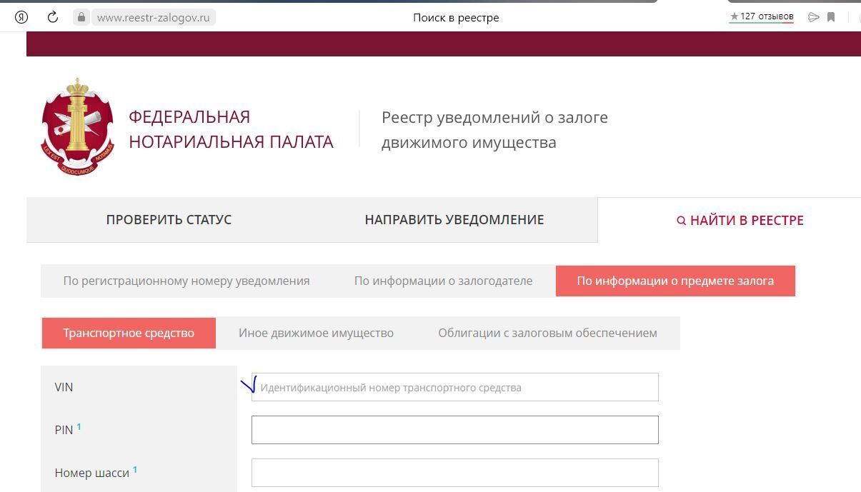 4. Узнать находится ли имущество в залоге или нет можно на официальном сайте