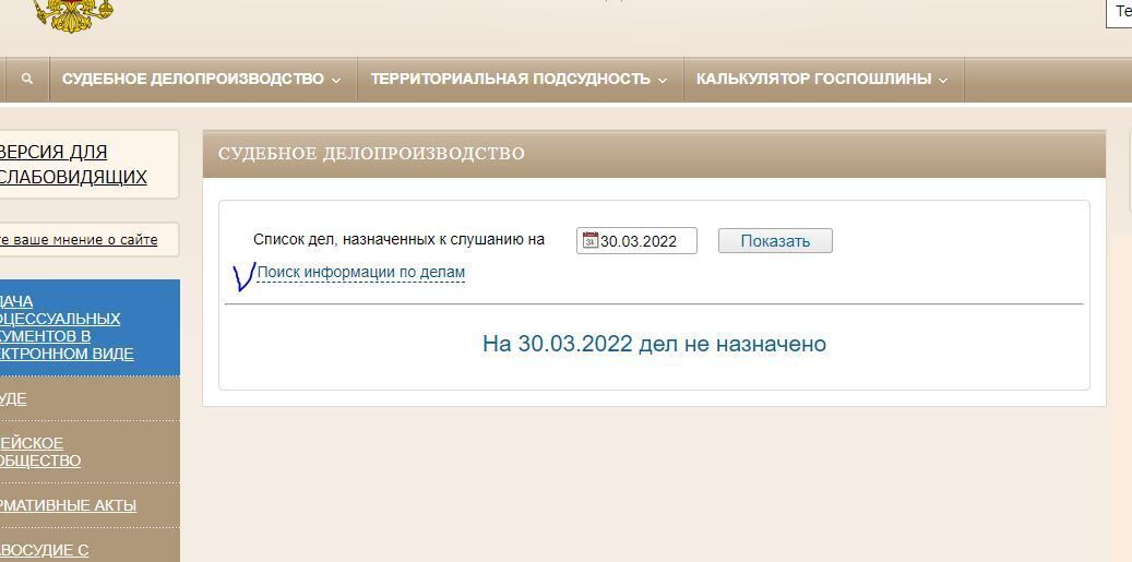 Аналогично можно найти информацию по делам, рассматриваемым Мировыми судьями, необходимо только знать интересующий вас судебный участок.