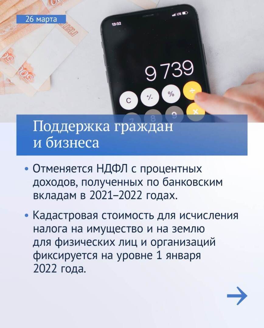 Изменение Российского законодательства, меры социальной подержи вступающие в силу с 1 апреля 2022г.