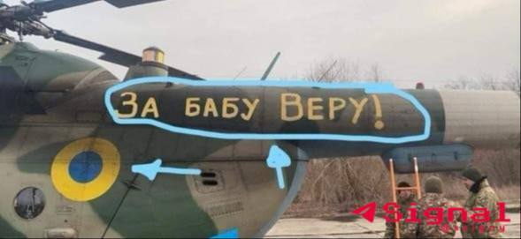 Интересно, что вертолёт с надписью «За бабу Веру!» летел за командирами «Азова». Видимо, очень «верили», что азовцев заберут (вера подвела).