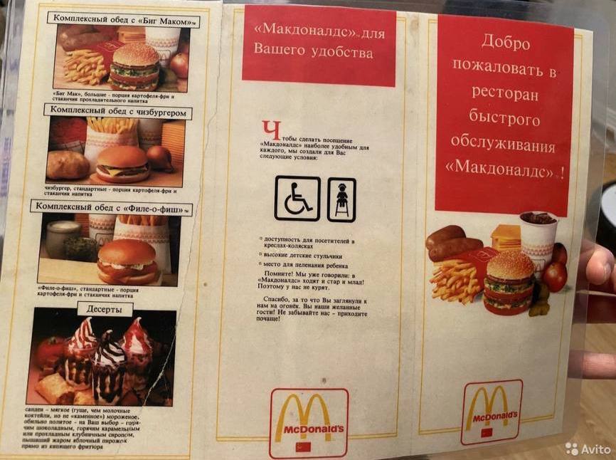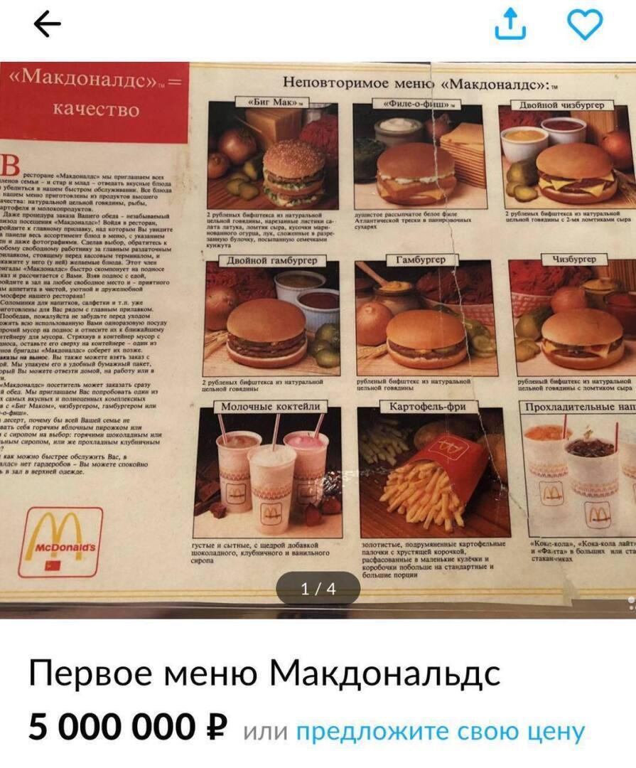 На авито продают первое меню Макдональдс за 5 миллионов рублей.