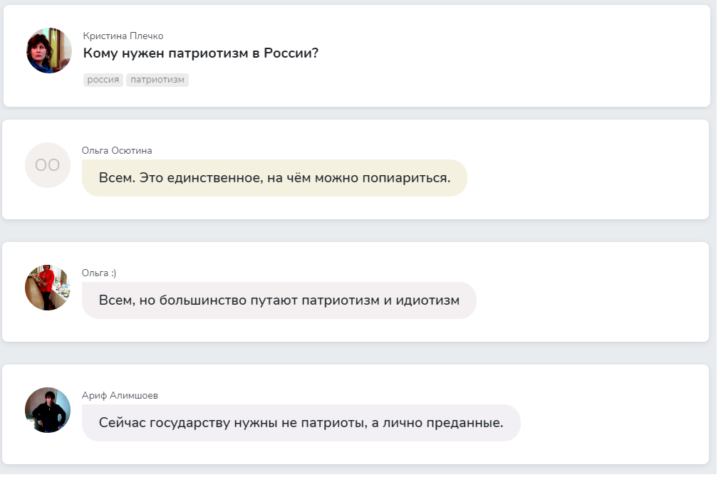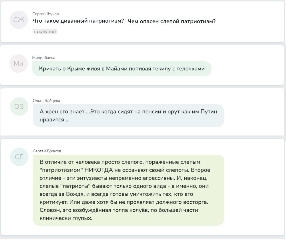 У меня поправочка. Я считаю себя патриотом своей Родины, но не отношу себя к "ура-пУтриотам РФ". На данный момент - диванный патриот, в силу возраста.