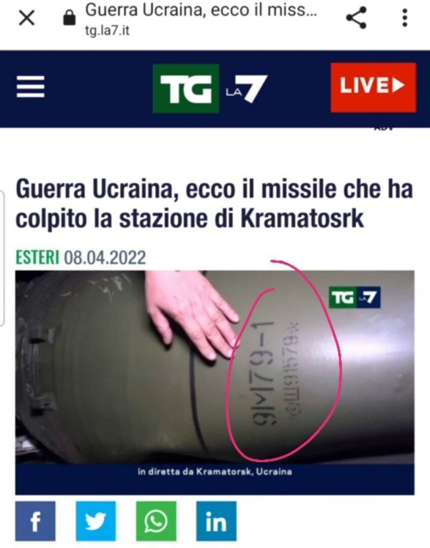 Итальянский телеканал опубликовал серийный номер точки У, которой ударили по Краматорску.