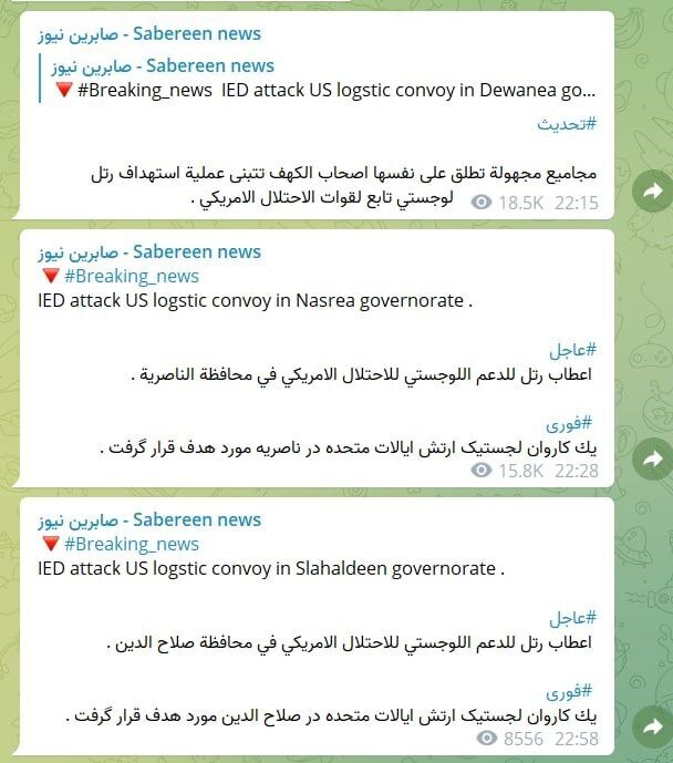 В 4 провинциях Ирака были подорваны колонны обеспечения вооруженных сил США.