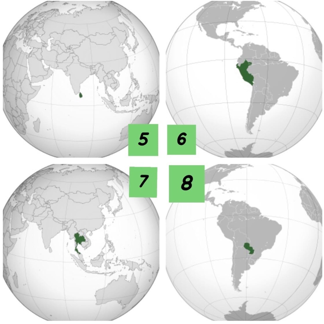 Бразилия, Парагвай, Аргентина в Южной Америке.