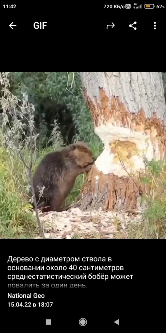 Дерево с диаметром ствола в основании около 40 сантиметров среднестатистический бобёр может повалить за один день. National Geographic