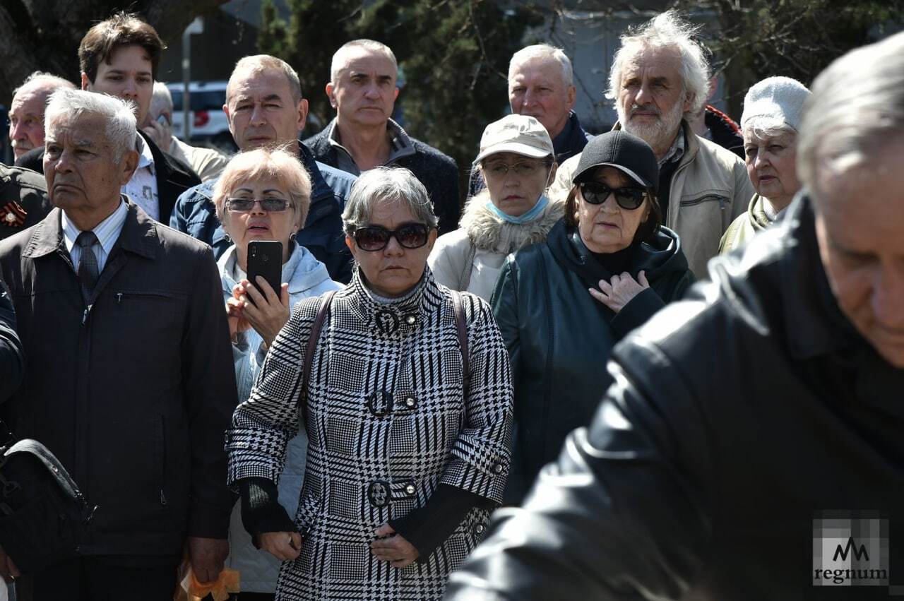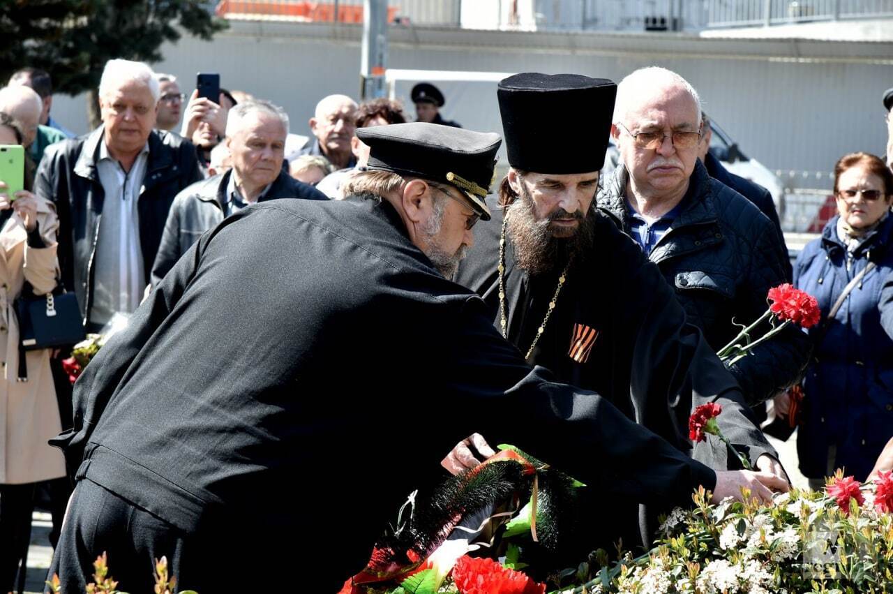 Сегодня в Севастополе прошла церемония прощания с крейсером. Журналисты обратили внимание, что на одном из траурных венков была лента с надписью «Кораблю и морякам».