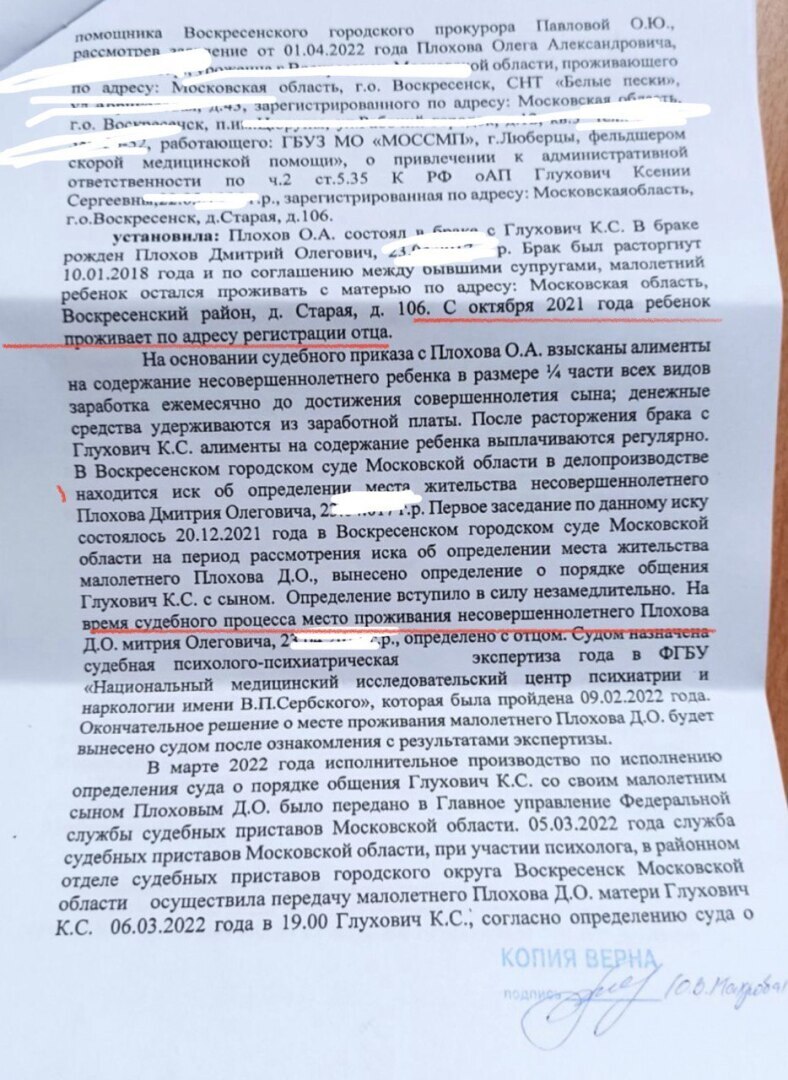 3. Нет ни одного судебного акта, в котором написано, что место жительства реьенка на период рассмотрения спора определено с папой. Если бы так было, то Плохов бы мог обратиться в суд и получить исполнительный лист. И он обратился. Но суд ему отказал именно потому, что суд не выносил определения о месте жительства ребёнка с отцом.