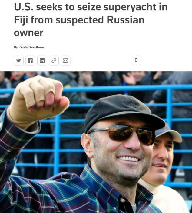 Служба новостей Китая , 19 апреля (Рейтер) — Соединенные Штаты пытаются захватить суперяхту, пришвартованную на Фиджи, согласно запретительному судебному приказу, поданному генеральным прокурором Фиджи 19 числа по местному времени, сообщает Reuters. Считается, что яхта принадлежит российскому миллиардеру Сулейману Керимову, который сам находится под санкциями США и Европейского союза.