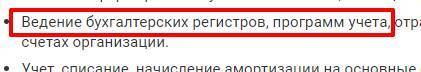 - Ведение бухгалтерских регистров, программ учета, отражение операций на счетах организации.