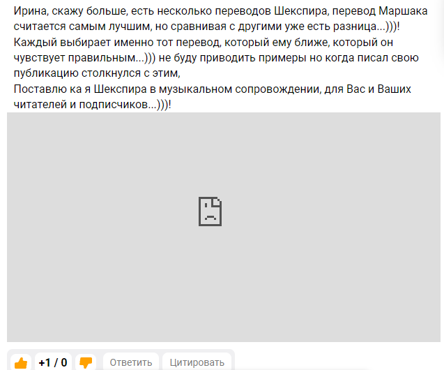 Ирина, не открывается, тогда поставлю Вам другой ролик, тоже по сонету Шекспира, он должен открыться, как уверен откроется и первый, видимо неполадки с интернетом, такое бывает, особенно в свете последних событий...)))