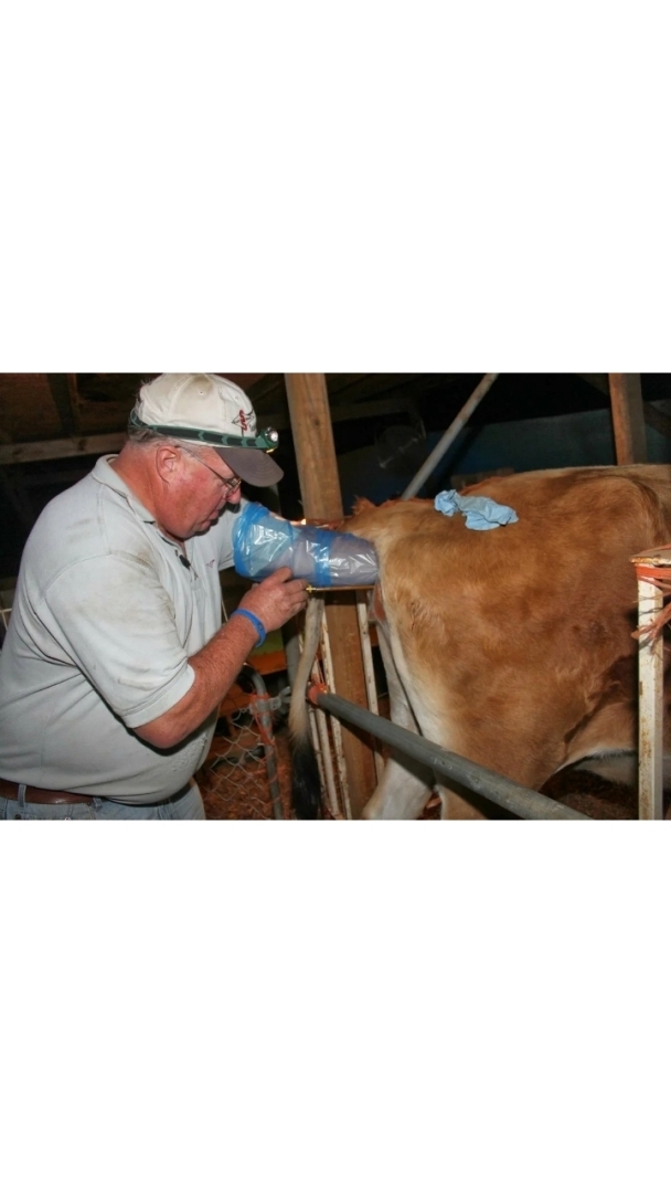 Осеменитель ,сказал- обмывайте зад коровы- рядом стоял бидон с теплой водой,мы помыли щеткой Майкину попу .Осеменитель был в резиновом фартуке ,сначало струей ее опорожнили ,потом на руку он одел длинную резиновую перчатку аж до предплечья и всунул руку ей во влагалище ,для стимуляции матки перед осеменением(😁это я сейчас знаю,в 13 лет я смотрела на эту процедуру и с ужасом и с интересом одновременно)Потом была железная типа спица ,после массажа матки ей ввели большим шприцом сперму быка .Процедура окончена .Майку назад, отец еле еле, как тащил ,она не хотела никуда идти 😁