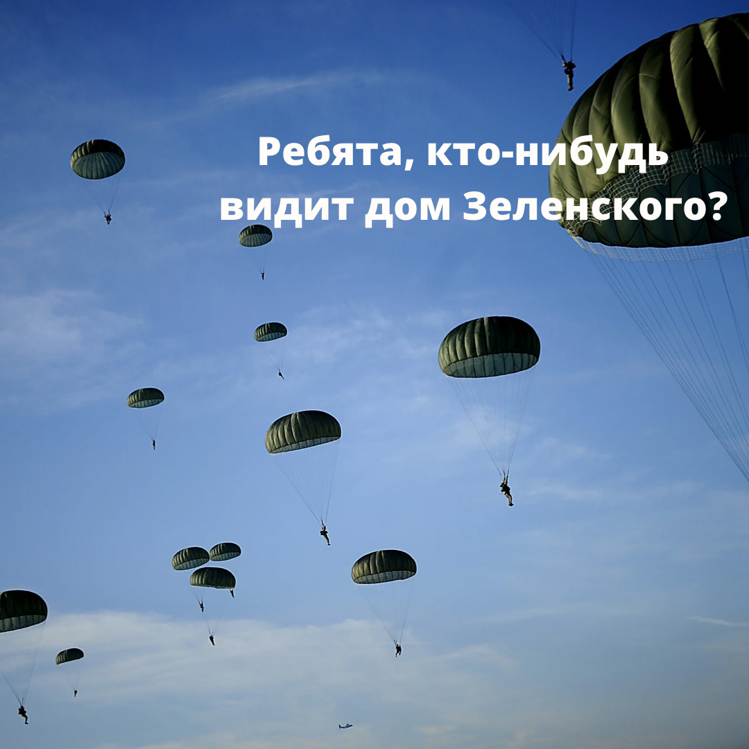 Да, дамы и господа. И так бывает. Наша армия летает на парашютах и приземляется прям на порог в дом к Зеленскому.