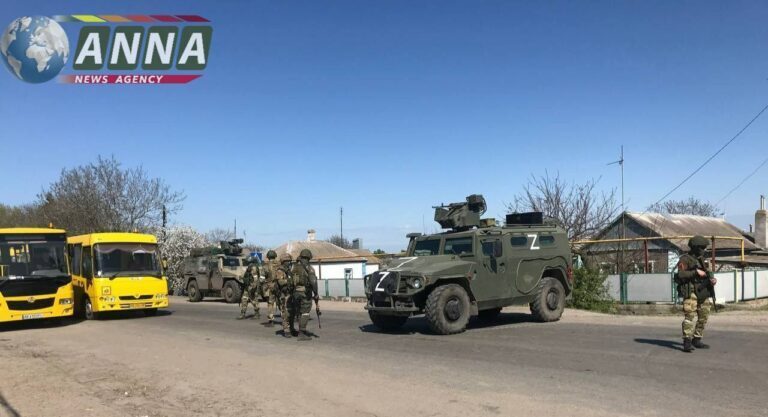 Судя по кадрам из района, десятки автобусов готовы к эвакуации мирных жителей. Район охраняется российскими военнослужащими.