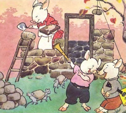 Так вот, хозяин "поросят" тоже приобщиться решил. Для этого взял он портреты вождей Маркса, Энгельса и Ленина размером полтора на метр, и приспособил на крыше своего магазина...