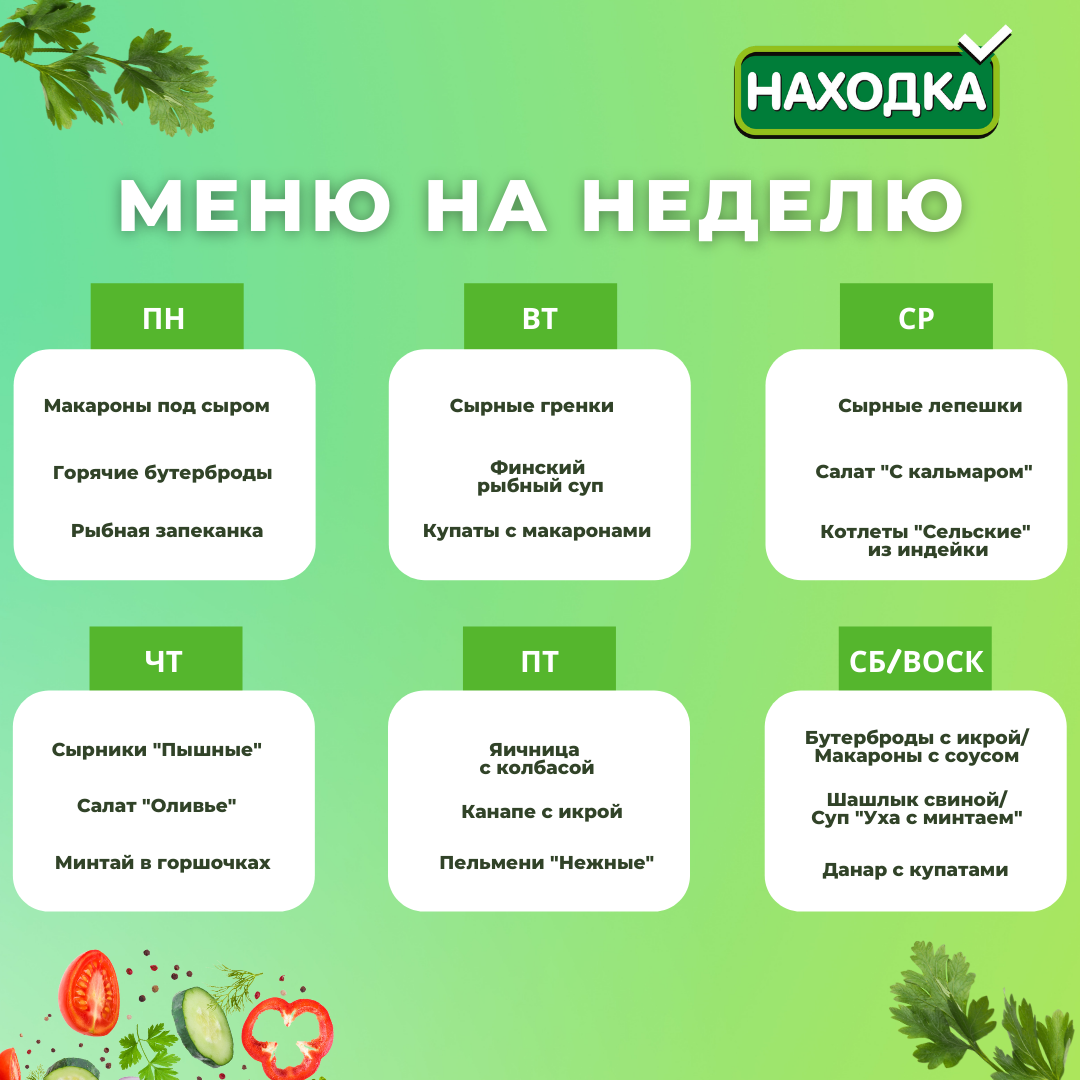 Прошу... Меню на неделю...