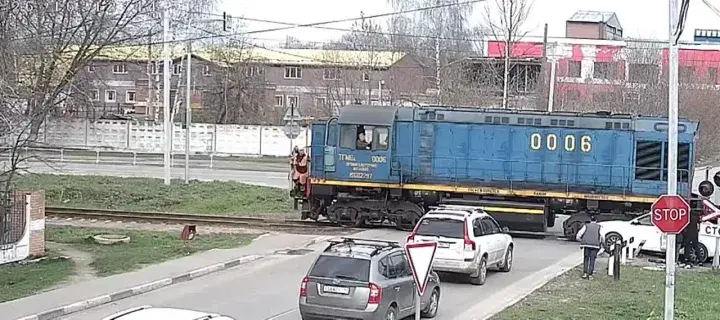 В подмосковном г. Щелково электровоз снёс легковушку, двум мальчикам сильно повезло, видео