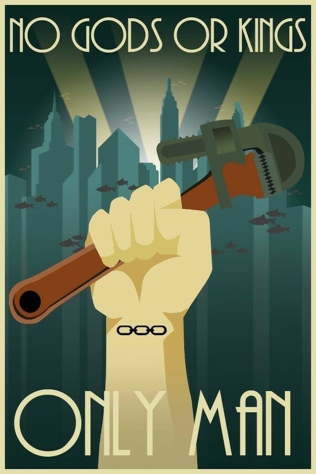 «No gods or kings - only man». Если для вас эта фраза знакома, значит вы уже поняли о какой игре идёт речь. Bioshock, пусть и имела уникальный графический стиль, завораживающее окружение и увлекательный игровой процесс, в первую очередь в глаза мне бросилась именно это фраза.