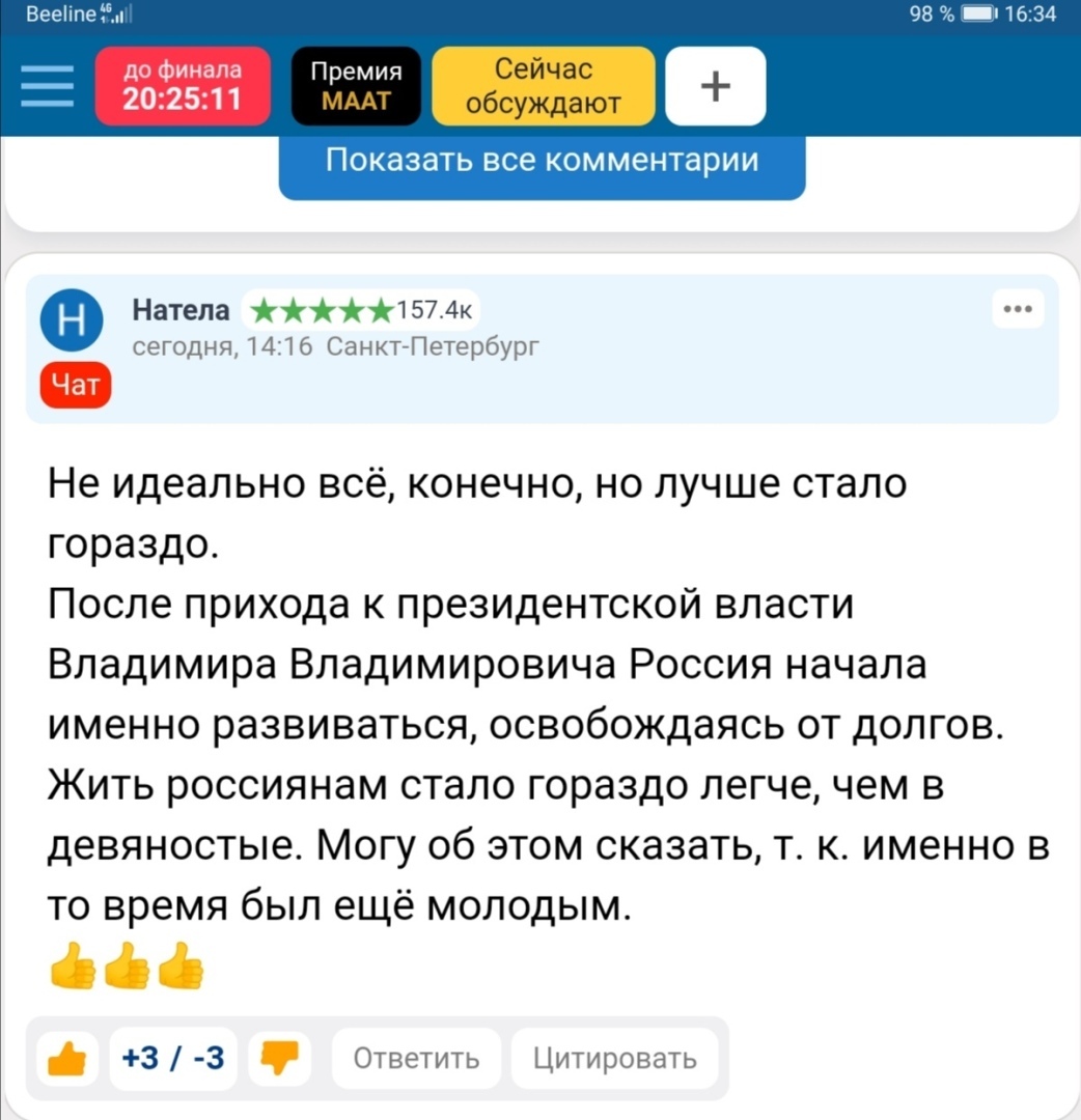 Юля, я не знаю по какой причине Вы тут, отследить ситуацию видимо сложно, но поверьте, я никогда, ни при каких обстоятельствах, человека не оскарблю, только потому, что у него другое мнение! Но к сожалению в силу характера, вторую щеку после удара не подставляю🤷♀️Здесь на сайте есть человек 7, которые вносят смуту и сыпят оскарблениями, наверно разумно было бы уйти, но я просто посылаю ответку и она гораздо точнее!