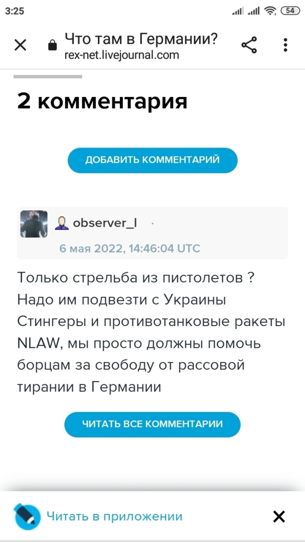 Только стрельба из пистолетов ? Надо им подвезти с Украины Стингеры и противотанковые ракеты NLAW, мы просто должны помочь борцам за свободу от рассовой тирании в Германии