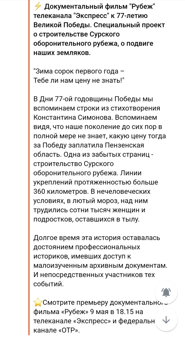 О премьере докфильма Рубеж, о Сурском оборонительном рубеже.