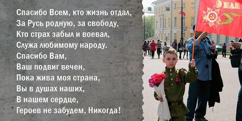 9 мая-это главный праздник для России и наших ветеранов, сделал подборку нескольких небольших стишков очень запоминающихся для детей и взрослых, которыми вы сможете порадовать наших любимых бабушек и дедушек в этот праздник!