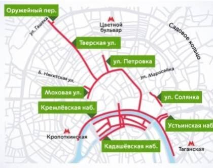 Сегодня улицы в центре (указаны на картах) перекрыты. По мере прохождения колонны Парада Победы и участников акции «Бессмертный полк», некоторые ограничения будут сняты.