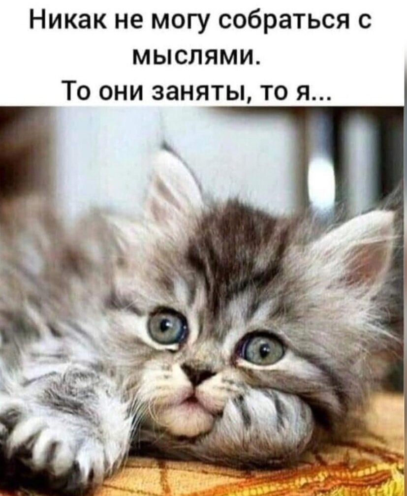 Замечательная подборка! Всегда с удовольствием рассматриваю фотки котеек. "Никак не могу собраться с мыслями. То они заняты, то я". Как тонко подмечено!