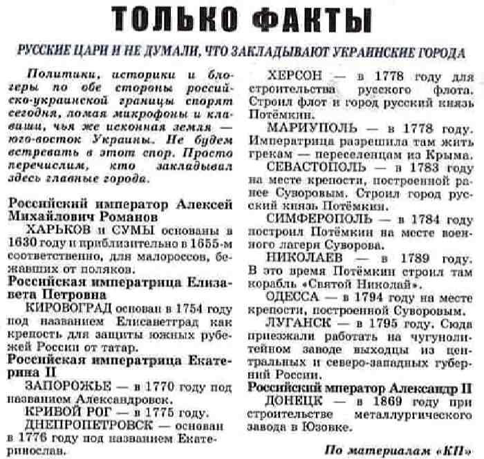 Глупо копаться в истории оправдывая свои притязания на чужие территории, есть границы признанные международными соглашениями (с которыми согласилась в своё время и РФ) и нарушение их не приветствуется мировым сообществом...