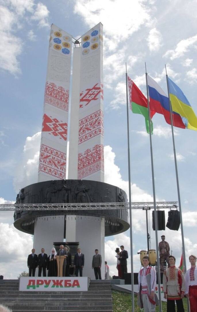 Памятник установлен в 1975 году на стыке границ России, Украины и Белоруссии и посвящён дружбе между народами.