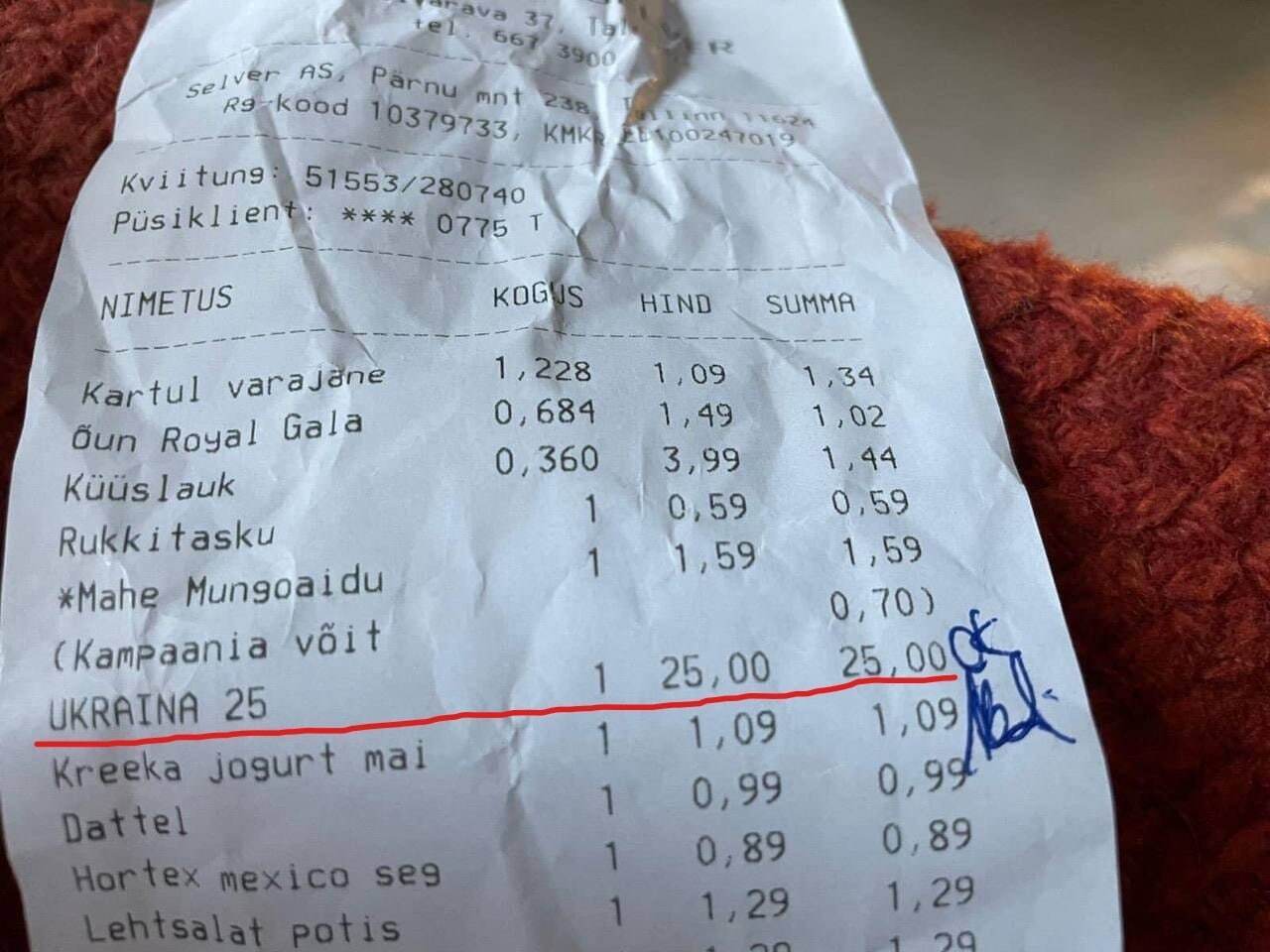 Эстонская торговая сеть Selver опровергла обвинения в том, что в магазинах покупателям без спроса добавляют в чек 25 евро в качестве пожертвования в пользу Украины.