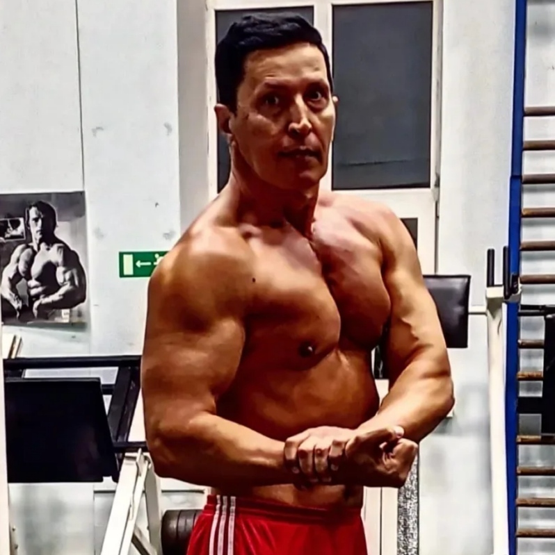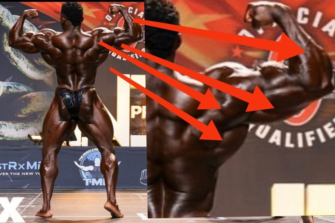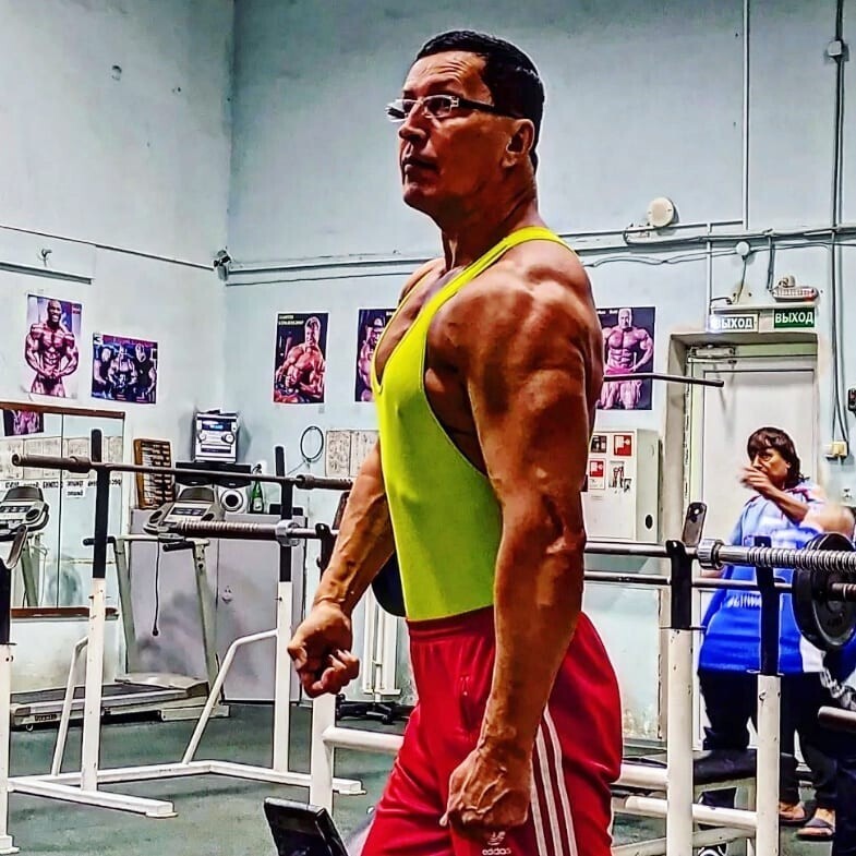 Огромные круглые мышцы, мощные дельты , шикарный трицепс, внушительные предплечья и "маленький" бицепс!
