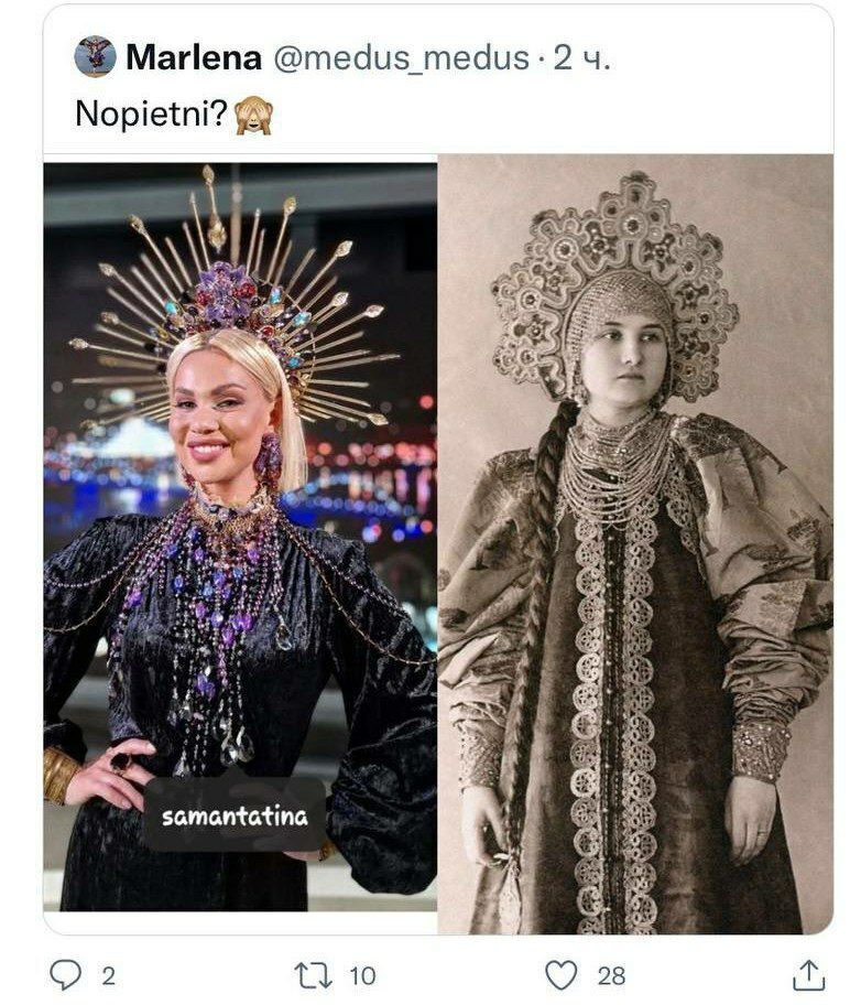 Уж не знают, что и нацепить на себя! Между прочим, эта фигня на голове вообще не похожа на кокошник. Сравните! Скорее что-то из области космоса.