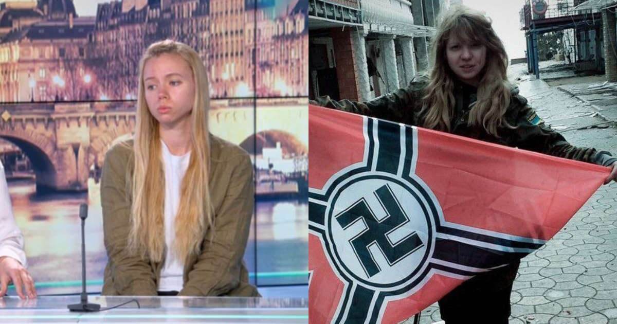 А ничего, что интервью фр телеканалу давали Екатерина Прокопенко и Юлия Федосюк, а с нацистским флагом изображена Виктория Заверуха. Да, первый муж у нее был азовец, но она даже не похожа на блондинку во Франции.